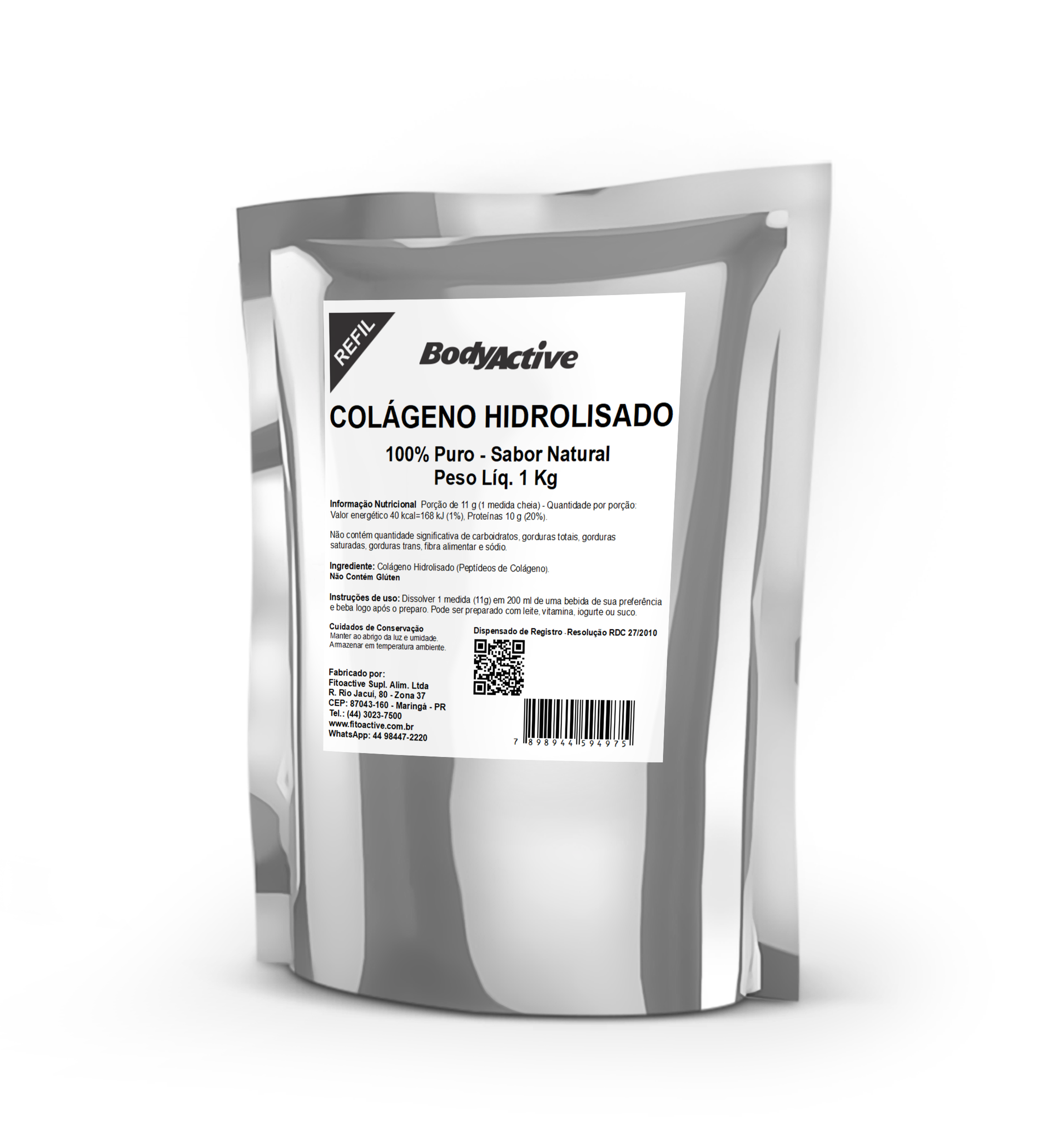 O Colágeno Hidrolisado ou Peptídeo de Colágeno Hidrolisado é altamente digerível, mais de 90% são digeridos e absorvidos após a ingestão oral. Fornece 20 aminoácidos diferentes para compor as proteínas do organismo e para dar sustentação aos diferentes tecidos do corpo, sobretudo pele, ossos e cartilagem. Assim, melhora as condições gerais da pele, ossos e articulações. Nas dietas para redução de peso promove a saciedade. 100% Puro